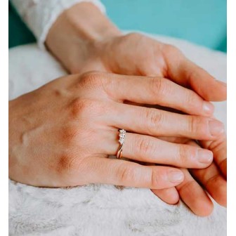 Scegli la combinazione perfetta delle onde in oro Bianco e Rosè che racchiudono tre Diamanti da 30 Punti Carati totali, per dichiarare il tuo amore sincero con un simbolo di unione eterna.