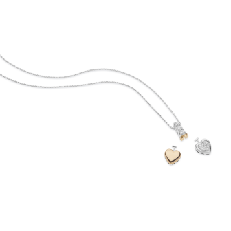 Un filo d'oro giallo avvolge i diamanti per renderli ancora più lucenti. Il girocollo nasconde una sorpresa: con un semplice gesto i cuori si tolgono e i gioielli si trasformano in classici trilogy da indossare in ogni occasione.