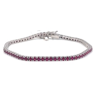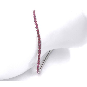Diritto recessoBracciale tennis oro bianco 18 kt 750‰ con rubini naturali carati 4,75. Il bracciale ha un peso di 10.7 gr e una lunghezza di 18 cm.