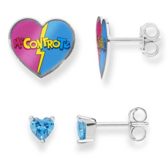 Diritto recessoME CONTRO TE . 2 coppire di orecchini. Una con Logo cuore Orecchini da bambina in argento 925% rodiato e adesivo con smalto trasparente di protezione. La seconda in argento con cuori di cristallo azzurro
