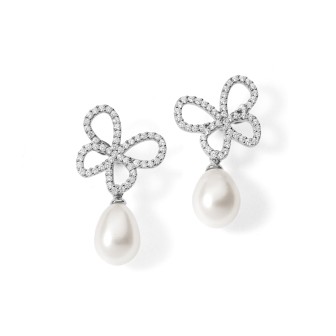 Diritto recessoOrecchini farfalle in argento 925 con zirconi e perle a goccia 10x9 COMETE ORA 107