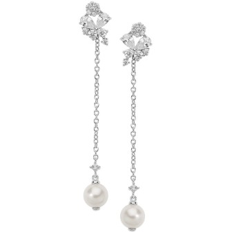 Orecchini farfalle in argento 925‰ con zirconi e perle coltivate 7/7,5mm.