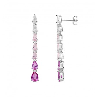 Orecchini lunghi Tennis in Argento 925% impreziositi da una cascata di gocce di zirconi che sfumano dal bianco al rosa. Gli orecchini sono della lunghezza di 4,3 cm con chiusura a perno e farfallina. Gioielli perfetti come regalo per le tue testimoni in nuance con il colore del tuo Matrimonio. Talismani portafortuna dedicati al giorno del sì ma che ben si adattano ad ogni occasione.